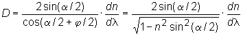 Как видно из этой формулы, чтобы достичь максимального спектрального разрешения призмы, мы должны использовать материл с максимальным значением показателя преломления n и дисперсией (dn / dl ).