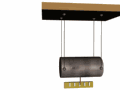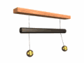 Баллистический маятник. Пуля попадает в массивный маятник и застревает в нём. По амплитуде колебаний маятника определяют скорость пули. |